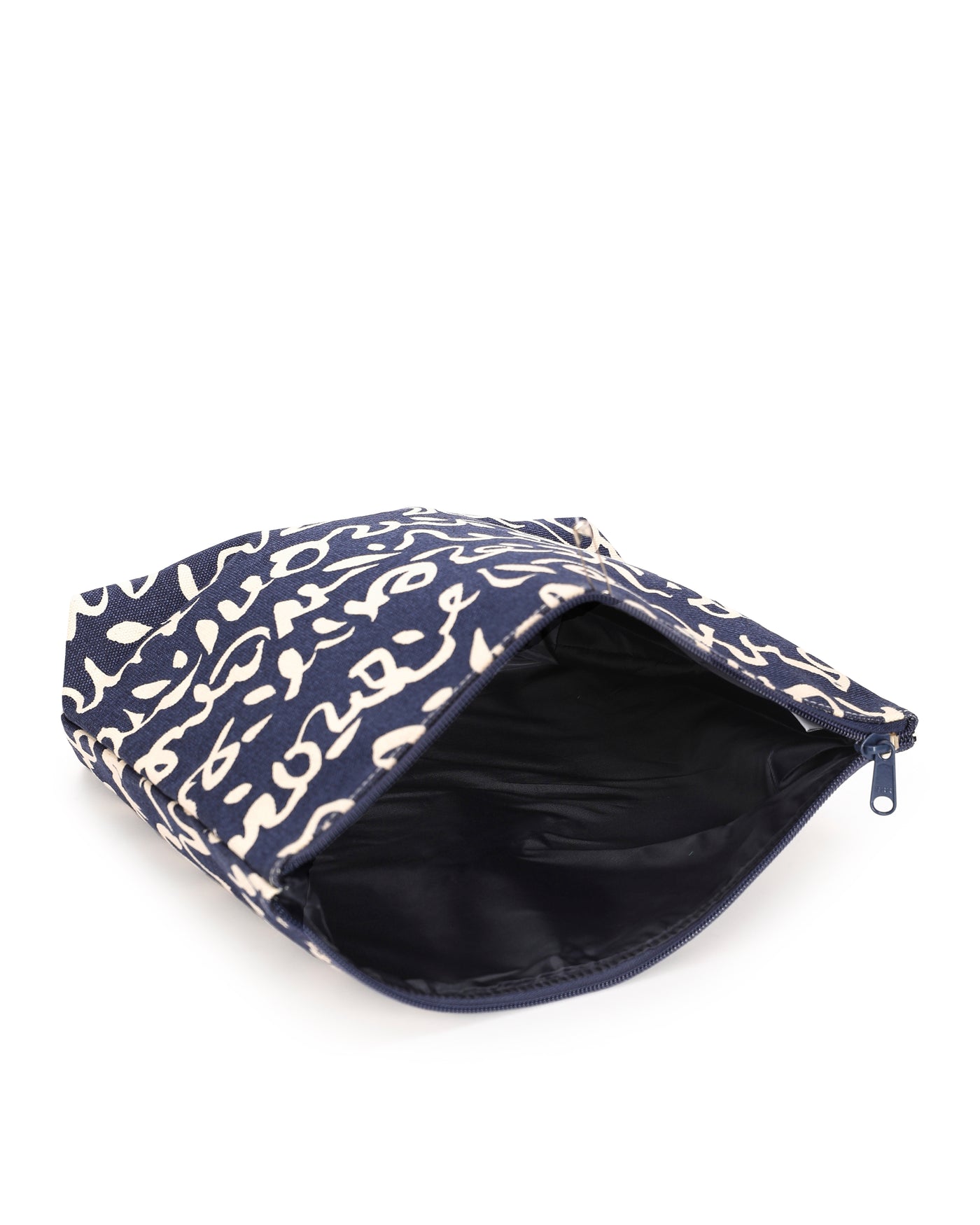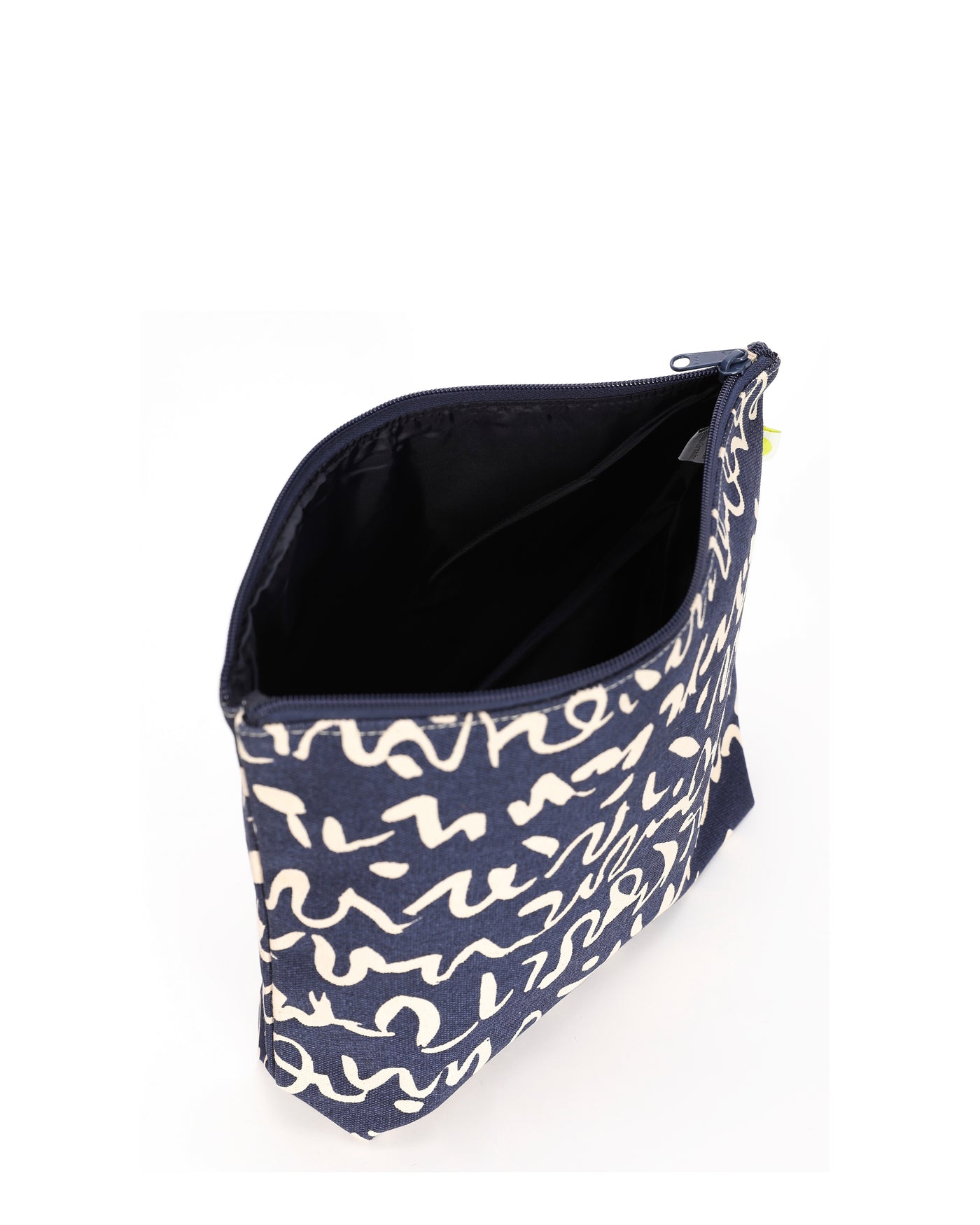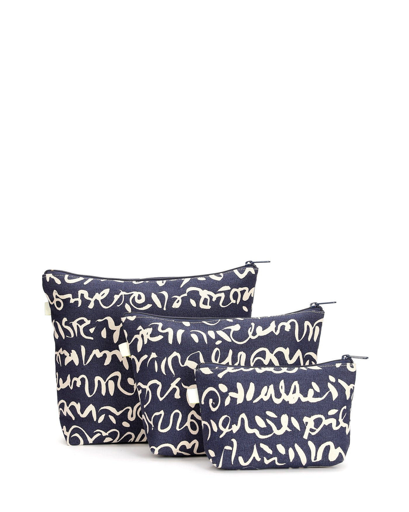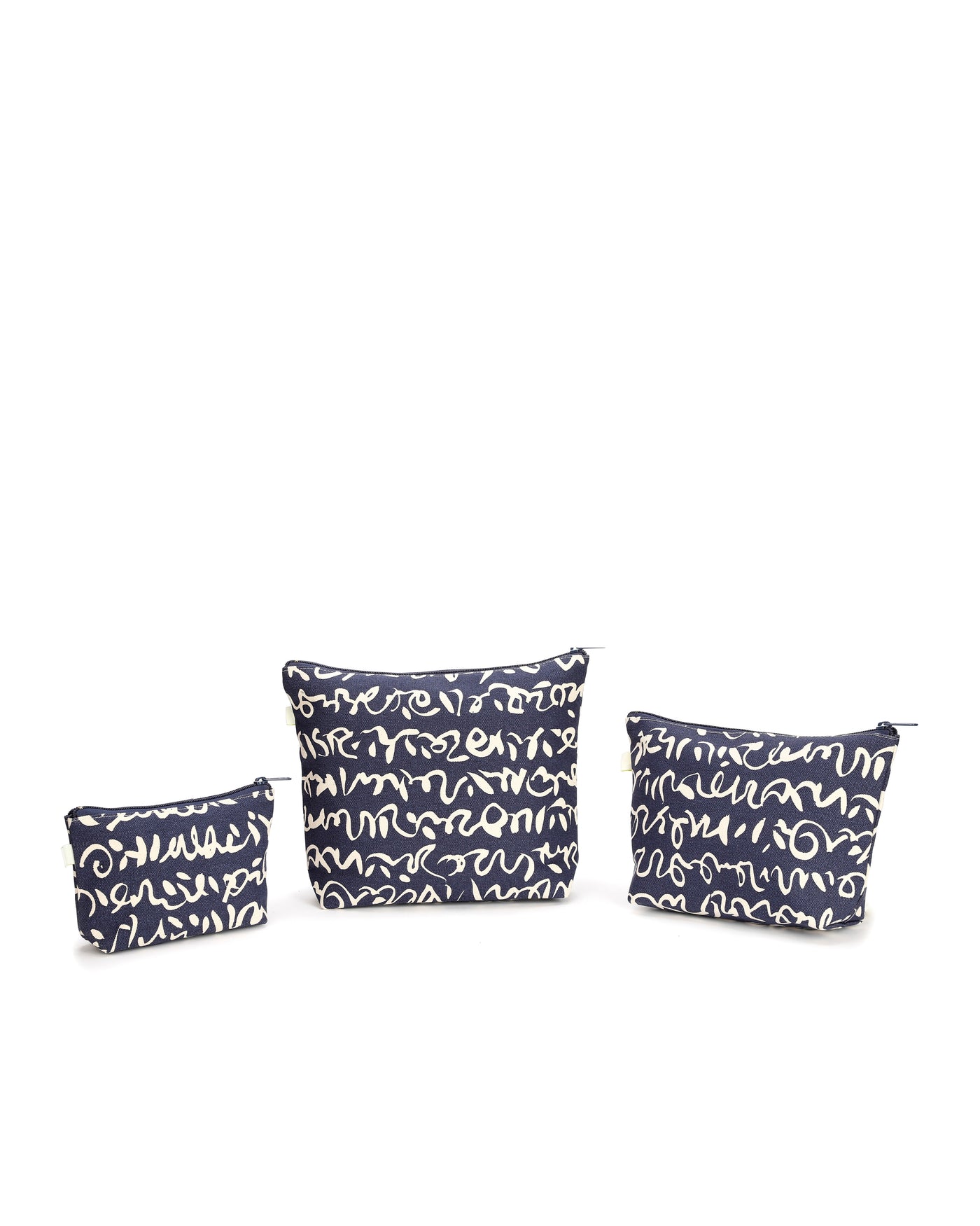 Keep your essentials stylishly organized with our Small, Medium, and XL vanity pouches. Featuring a smooth zipper closure and premium taffeta lining, these pouches are designed for durability and easy maintenance. The dark blue base with quirky squiggly print adds a fun yet sophisticated unisex appeal, perfect for all ages. Great for storing toiletries, cosmetics, stationery, or travel accessories.